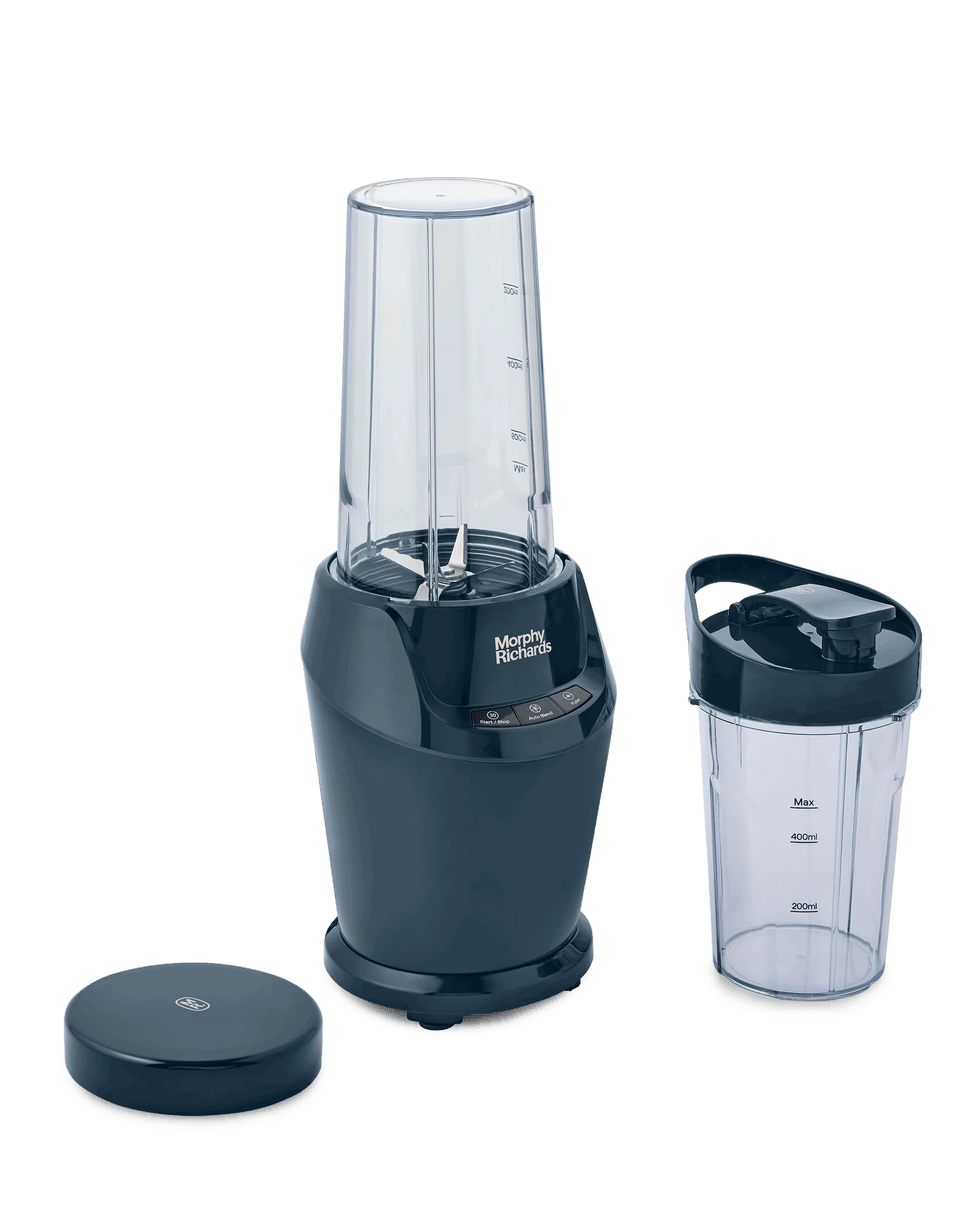 Its powerful blades chop, mix and blend with the same power as a full-sized model, yet its compact design fits perfectly on your worktopso you don't have to compromise on space. Its three simple settings, start, auto blend, and pulse, give you ultimate control over how much you blend. Made from top-quality materials and dishwasher-safe parts, the compact blender is designed to last and cleanup is a breeze.