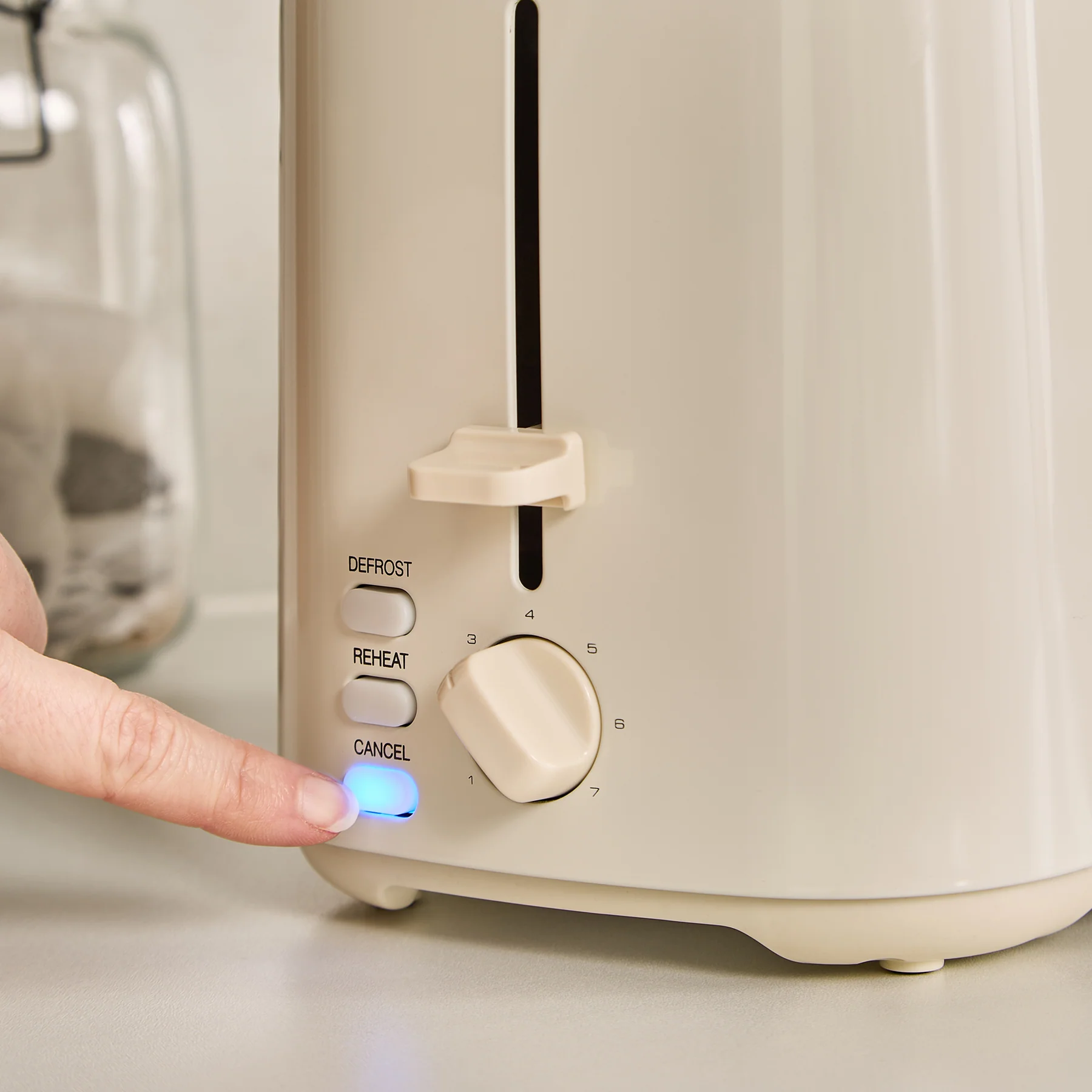 Removable crumb tray, Defrost bread setting, Reheat button, Cancel button, Cord storage, Bread Centralisation Mechanism, Cord Storage
