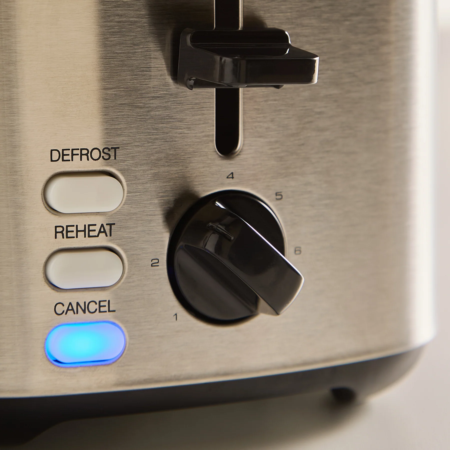 Removable crumb tray, Defrost bread setting, Reheat button, Cancel button, Cord storage, Bread Centralisation Mechanism, Cord Storage