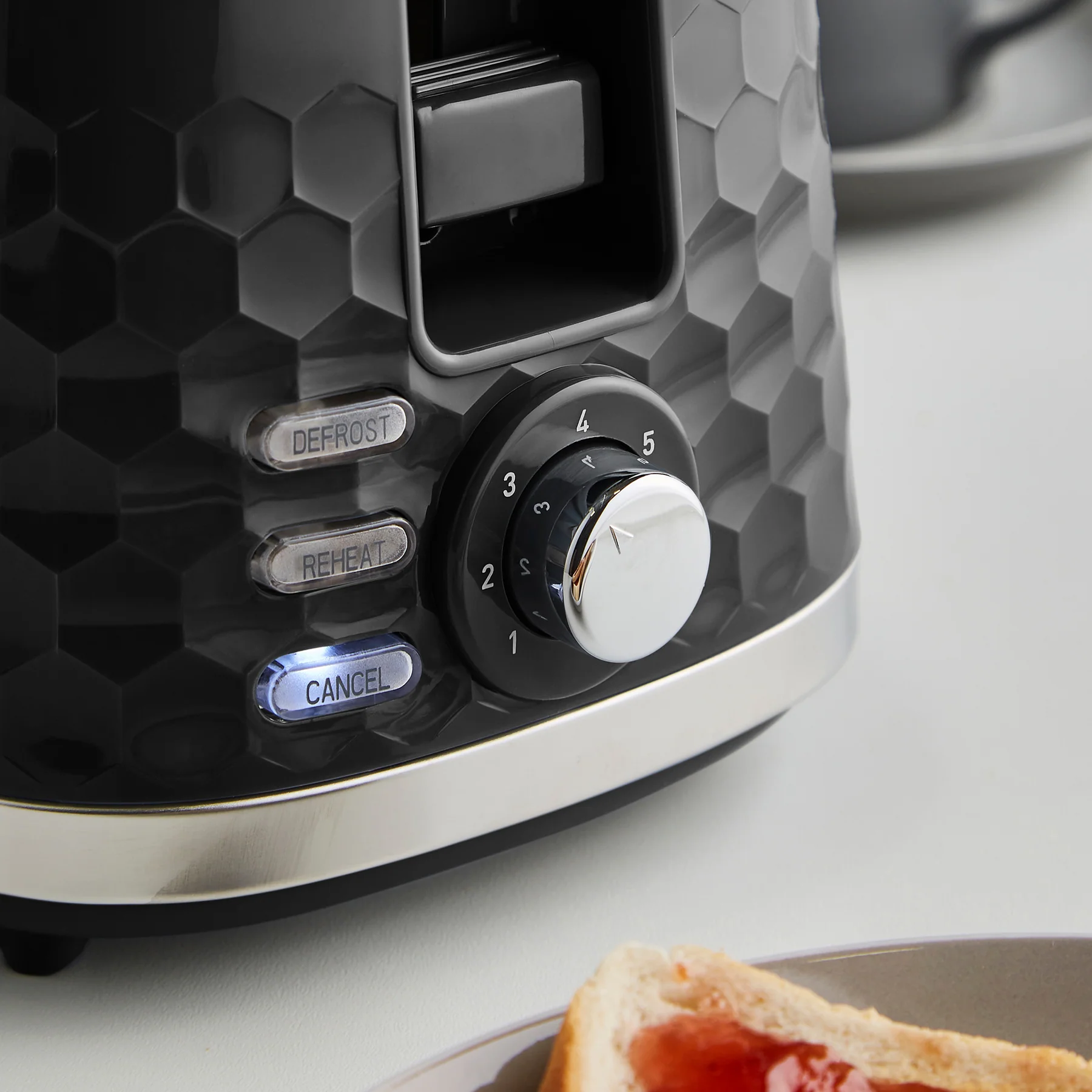 Defrost setting, Re-heat setting, Variable browning control, Removable crumb tray, Cord storage